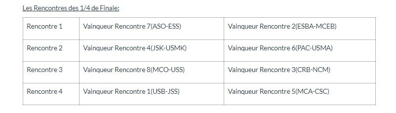 وفيما يلي برنامج دور الثمن وربع النهائي: