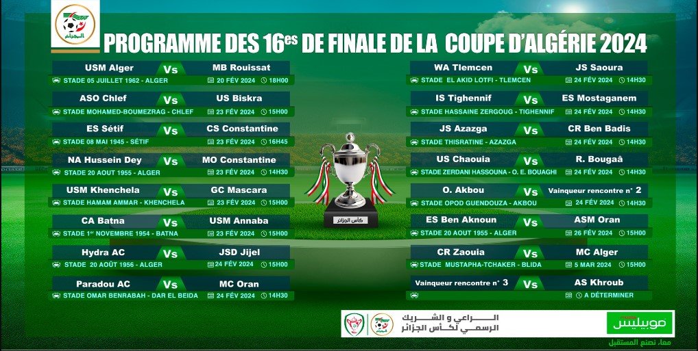 لجنة الكأس تعلن عن مباريات الدور الـ16 من كأس الجمهورية