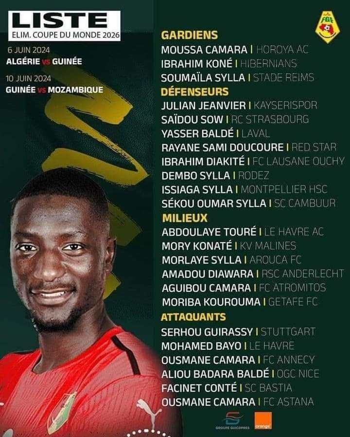 المنتخب الغيني يتسلح بالمحترفين لمواجهة الجزائر والموزمبيق في تصفيات كأس العالم