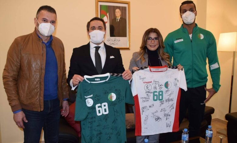 وقال الوزير مخاطبا لاعبي الفريق الوطني واعضاء الطاقم الفني “شرف لي زيارتكم قبل تنقلكم الى مصر للمشاركة في بطولة العالم 2021. هذه فرصة لتجديد دعم الدولة والوزارة المطلق لكم ووقوفها بجانبكم بكل الامكانيات المادية والمعنوية من اجل التألق وخوض غمار هذه المنافسة.” واضاف “اتمنى التوفيق للمنتخب الوطني وان يبرهن على ارادته في رفع التحدي والذهاب بعيدا في هذا المحفل الدولي ورفع الراية الوطنية عاليا. أنا واثق من انكم ستمثلون الجزائر أحسن تمثيل. آمالنا معلقة عليكم”، مقدما ايضا بالمناسبة “عرفانه وتقديره للمدرب الوطني آلان بورت في قيادة الفريق”. من جهتها، قالت كاتبة الدولة المكلفة برياضة النخبة، سليمة سواكري “جئنا اليوم لتقديم كل الدعم والتشجيع اليكم. اتمنى نجاح وتألق كرة اليد الجزائرية التي عودتنا على النتائج الايجابية. قطاعنا في خدمة رياضة النخبة. حظ موفق في بطولة العالم واتمنى لكم كل النجاح.”