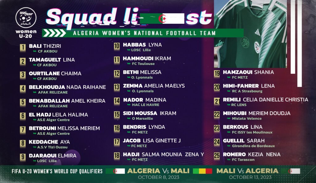منتخب الجزائر أقل من 20 سنة للسيدات يعلن عن قائمته لتصفيات كأس العالم