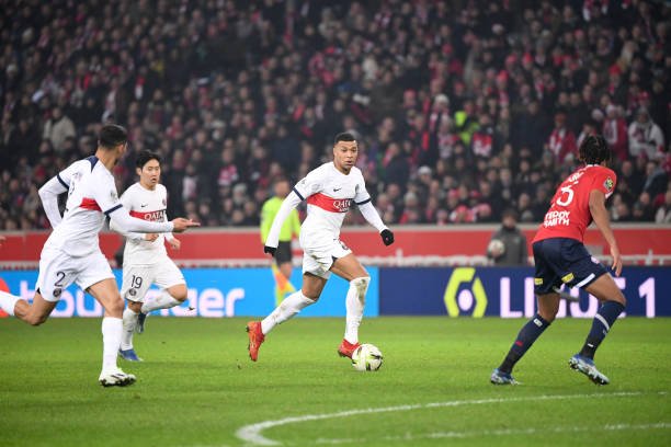 تقدم كيليان مبابي لباريس سان جيرمان من ضربة جزاء (د66) من المباراة عن طريق ركلة جزاء، وأدرك جوناثان ديفيد التعادل لأصحاب الأرض (د90+4).