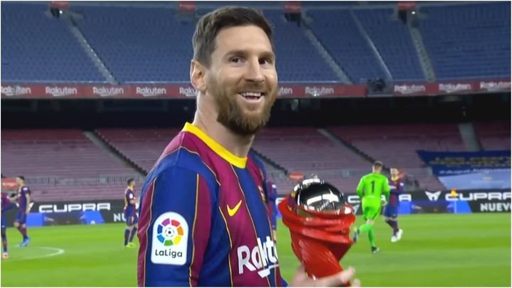 في شأن مشترك قام مسؤول من رابطة الليجا الإسبانية مساء أمس الاثنين قبيل مباراة برشلونة مع هويسكا بتسليم ليونيل ميسي جائزة أفضل لاعب في الدوري الإسباني عن الشهر الماضي.