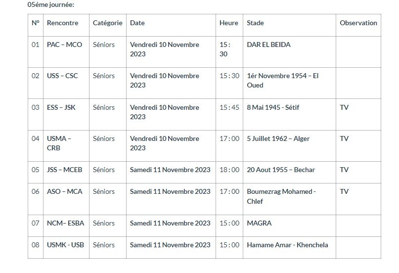 أعلنت الرابطة المحترفة لكرة القدم، عن برمجة الجولة الخامسة من الرابطة المحترفة الأولى لكرة القدم، والتي ستجرى يوم الجمعة المقبل 10 أكتوبر.